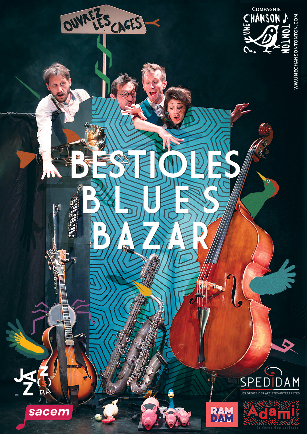 C’est un spectacle de chansons-fables zoo-poético-jazz, un cartoon théâtral où Jean de Lafontaine croiserait la rime avec Boby Lapointe et Louis Armstrong.